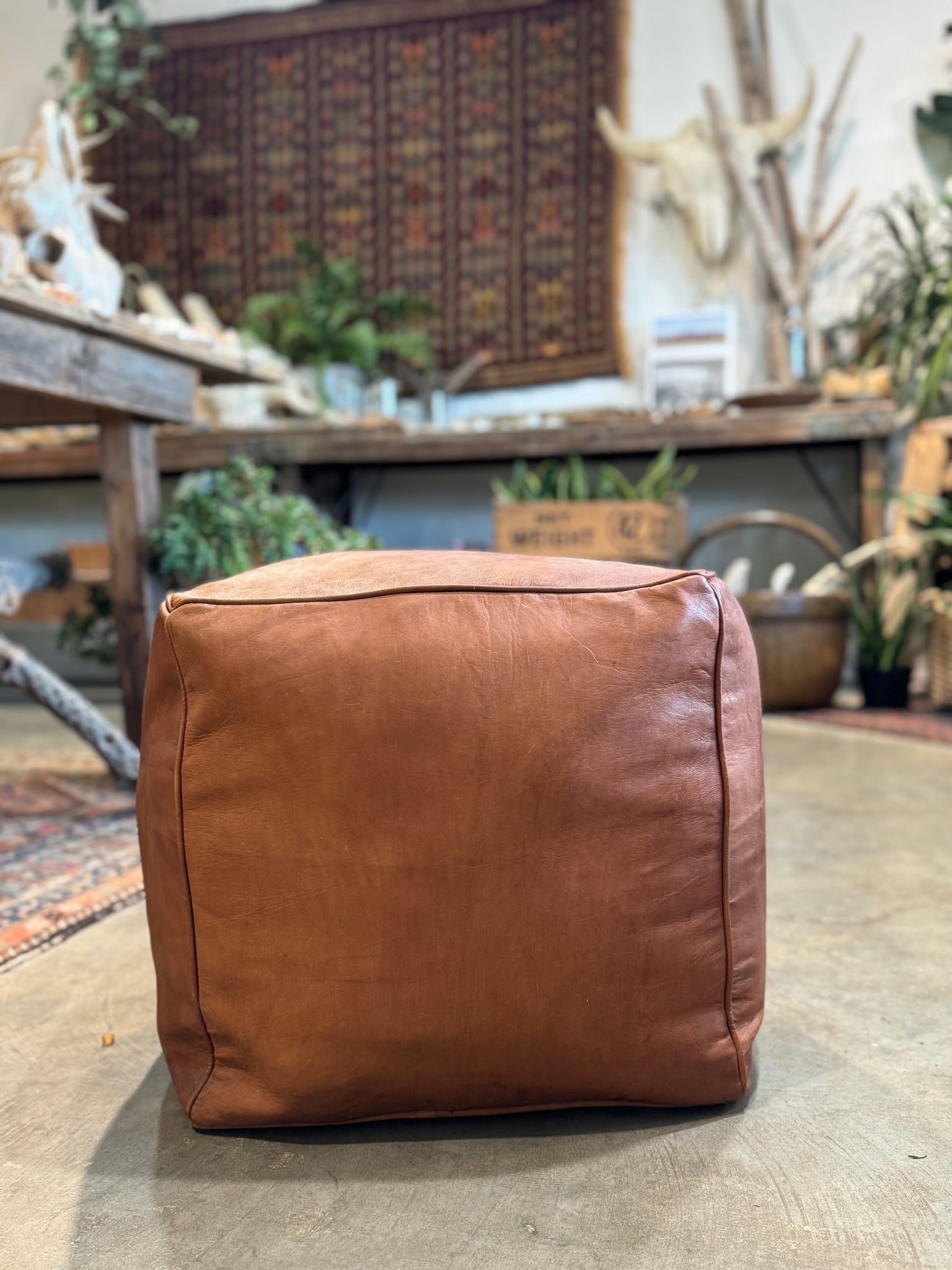 Moroccan Leather Pouf